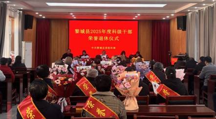 12月25日,黎城县委组织部在老干部股2号会议室,为今年退休的28位科级干部隆重举办荣誉退休仪式,县委组织部常务副部长李鑫山同志参加。